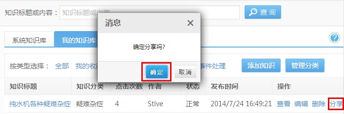 第二步:“编辑”修改文章,如下图说明,其编辑页面和操作方法与“添加知识”页面一样。